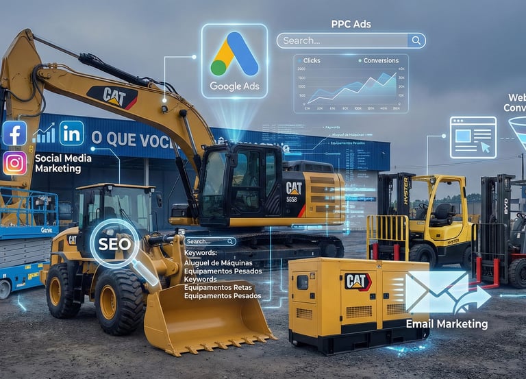 Sites modernos e focados em conversão, construídos especificamente para locadoras de equipamentos. Otimizados para mobile com solicitações de orçamento online e vitrines de frota.